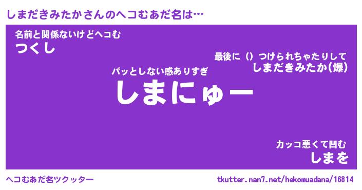| 男性向けラノベタイトル風あだ名 | 『しまだきみたかの憂鬱』 |