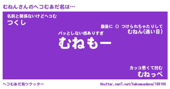 | 意味不明あだ名 | 『ペロリンむねん』『むねんフォーエバー』 |