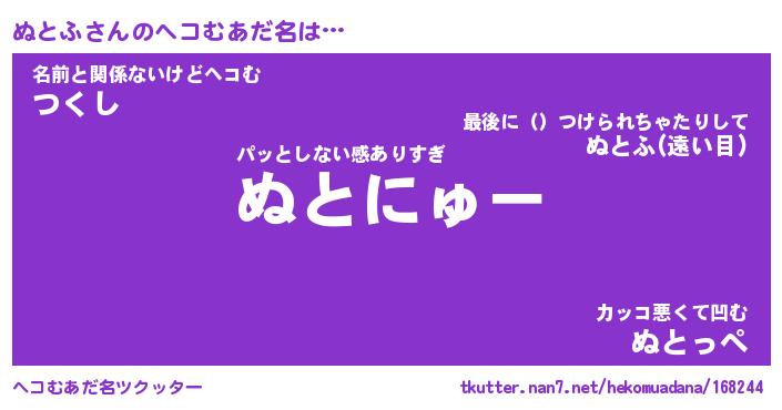 | ファンタジー風あだ名 | 『ヌトフェル』『エターナルヌトフー』 |