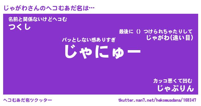| 意味不明あだ名 | 『ペロリンじゃがわ』『永久保存じゃがわ』 |