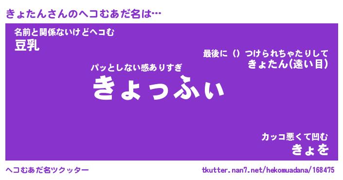 | 自動車の名前っぽいあだ名 | 『キョティマ』『キスラー』『キント』 |