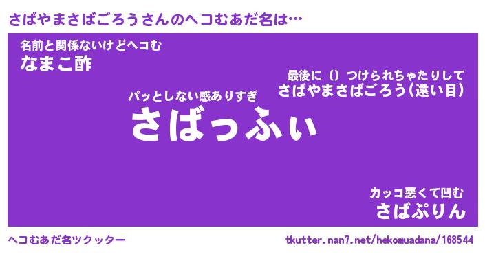 | 胡散臭い通販商品みたいなあだ名 | 『必ず成功する霊験あらたかなお札…その名も「さばやまさばごろう」』 |