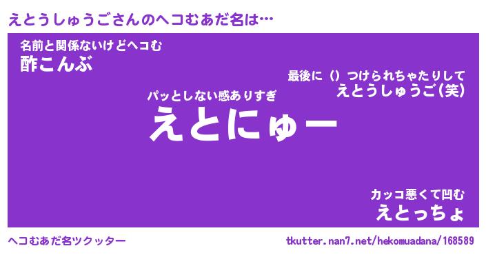 | 男性向けラノベタイトル風あだ名 | 『えとうしゅうごの憂鬱』 |