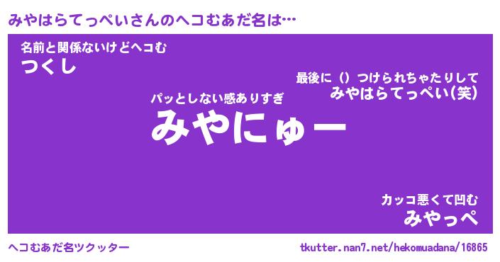 | 意味不明あだ名 | 『ペロリンみやはらてっぺい』 |
