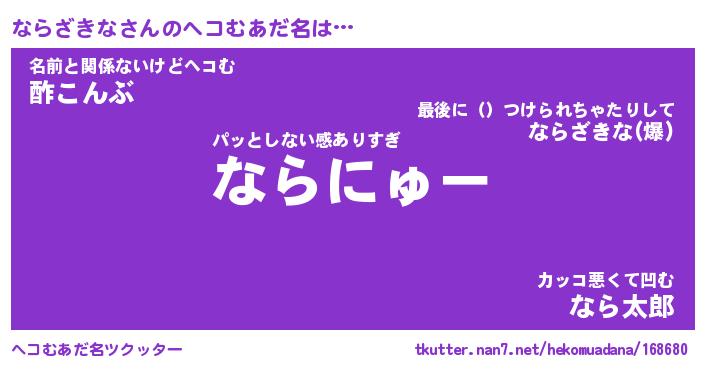 | 男性向けラノベタイトル風あだ名 | 『ならざきなの憂鬱』 |