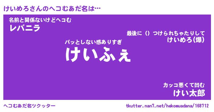 | 欧米人風あだ名 | 『マイケルけいめろ』『ウサインけいめろ』 |