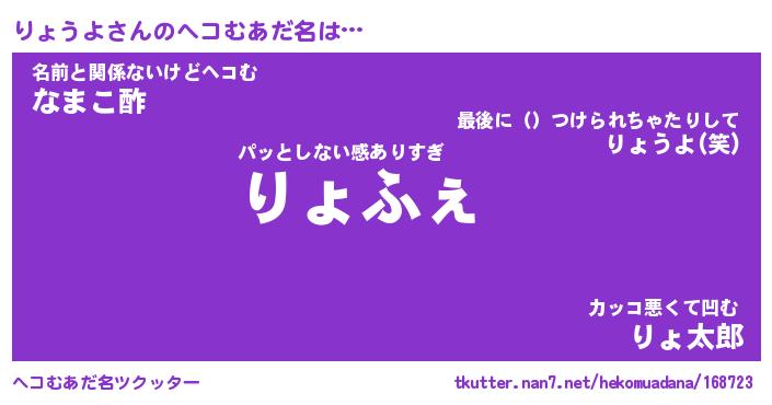 | ファンタジー風あだ名 | 『リョフェル』『エターナルリョウヨー』 |