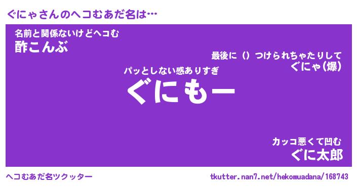 | 男性向けラノベタイトル風あだ名 | 『ぐにゃの憂鬱』 |