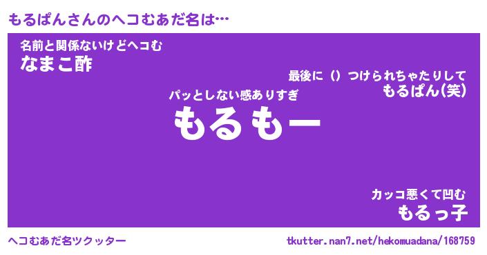 | 意味不明あだ名 | 『ペロリンもるぱん』『永久保存もるぱん』 |