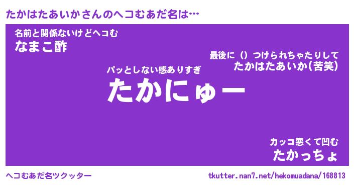 | ポケモン風あだ名 | 『タカチュウ』『タカハダネ』 |