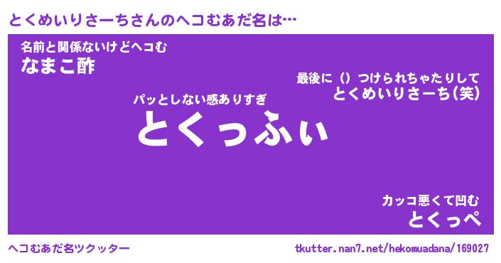 | 意味不明あだ名 | 『ペロリンとくめいりさーち』 |