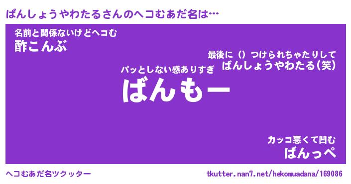 | ポケモン風あだ名 | 『バンチュウ』『バンシダネ』 |