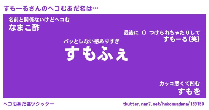 | 意味不明あだ名 | 『ペロリンすもーる』『永久保存すもーる』 |