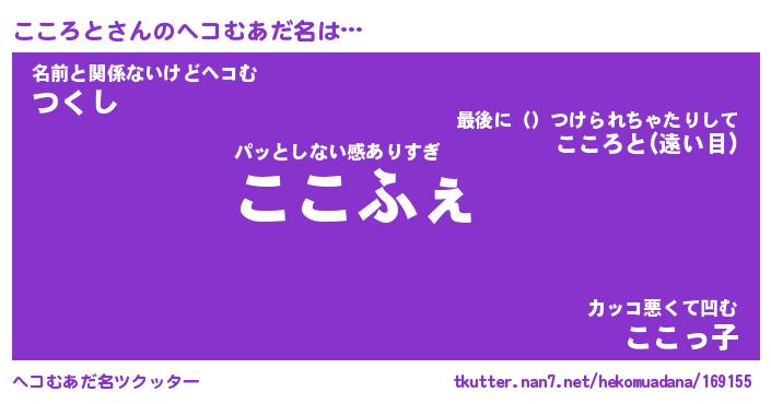 | ファンタジー風あだ名 | 『ココフェル』『エターナルココロトー』 |