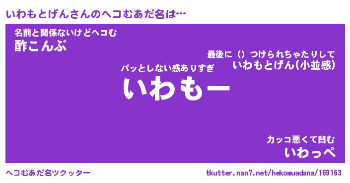 | 男性向けラノベタイトル風あだ名 | 『いわもとげんの憂鬱』 |