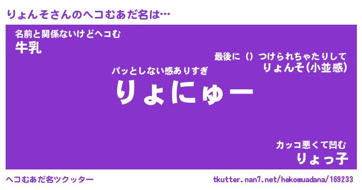 | 2回繰り返すあだ名 | 『りょりょ』『りりょょ』『うねうね』 |