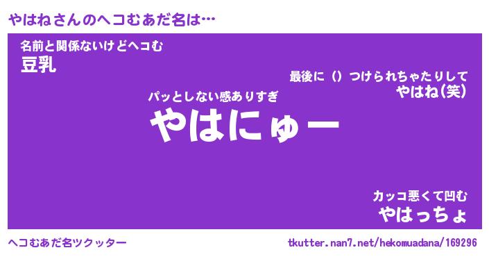 | ポケモン風あだ名 | 『ヤハチュウ』『ヤハネダネ』 |