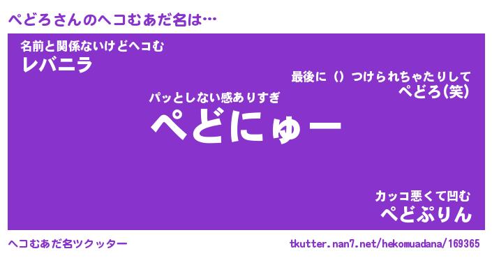 | 意味不明あだ名 | 『ペロリンぺどろ』『ぺどろフォーエバー』 |