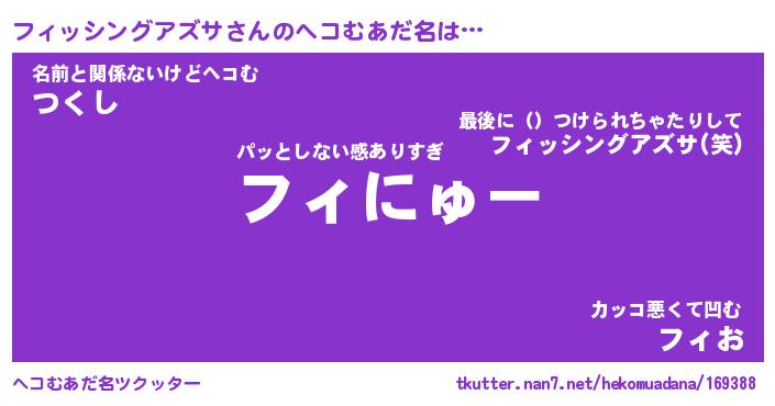 | 意味不明あだ名 | 『ペロリンフィッシングアズサ』 |