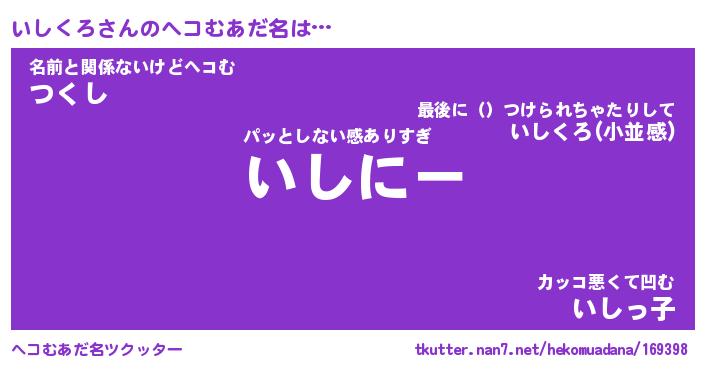 | 男性向けラノベタイトル風あだ名 | 『いしくろの憂鬱』 |