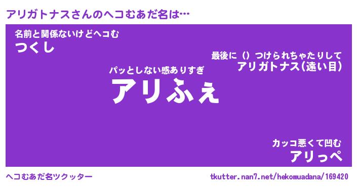 | 肩書あだ名 | 『アリガトナスCEO』『アリガトナス団長』 |