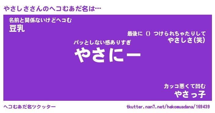 | ヒーロー風カッコイイあだ名 | 『スーパーヤサシサ』『銀牙騎士ヤサ』 |