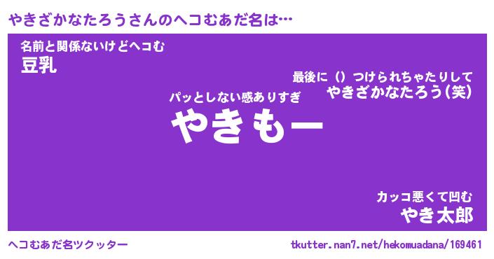 | 男性向けラノベタイトル風あだ名 | 『やきざかなたろうの憂鬱』 |
