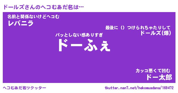 | ポケモン風あだ名 | 『ドーチュウ』『ドールダネ』 |