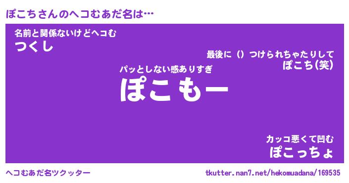 | 意味不明あだ名 | 『ペロリンぽこち』『ぽこちフォーエバー』 |