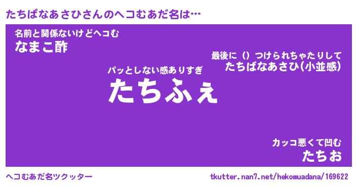 | ヒーロー風カッコイイあだ名 | 『スーパータチバナアサヒ』 |