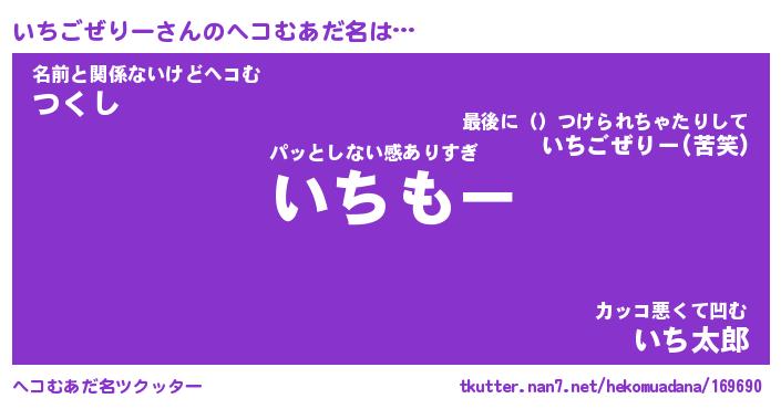 | ヒーロー風カッコイイあだ名 | 『スーパーイチゴゼリー』『魔戒騎士イチ』 |