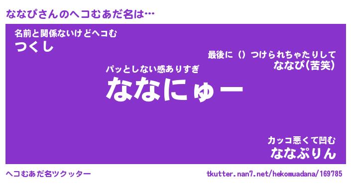 | ヒーロー風カッコイイあだ名 | 『スーパーナナピ』『ウルトラななぴマン』 |