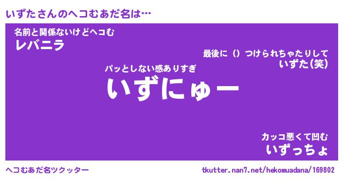 | ヒーロー風カッコイイあだ名 | 『スーパーイズタ』『ウルトラいずたマン』 |