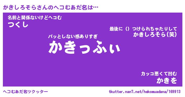 | ヒーロー風カッコイイあだ名 | 『スーパーカキシロソラ』『天弓騎士カキ』 |