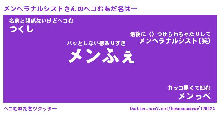 | ポケモン風あだ名 | 『メンチュウ』『メンヘダネ』 |