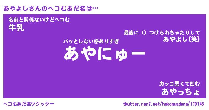 | ファンタジー風あだ名 | 『アヤフェル』『エターナルアヤヨシー』 |