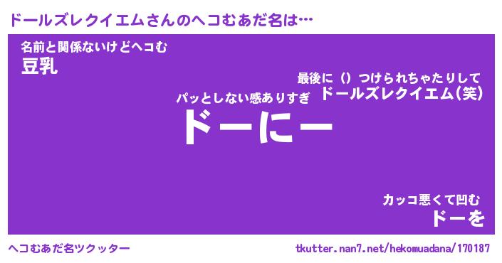 | 意味不明あだ名 | 『ペロリンドールズレクイエム』 |