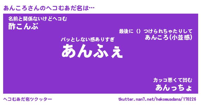 | 意味不明あだ名 | 『ペロリンあんころ』『永久保存あんころ』 |