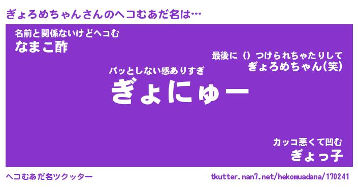 | 2回繰り返すあだ名 | 『ぎょぎょ』『ぎぎょょ』『うるうる』 |