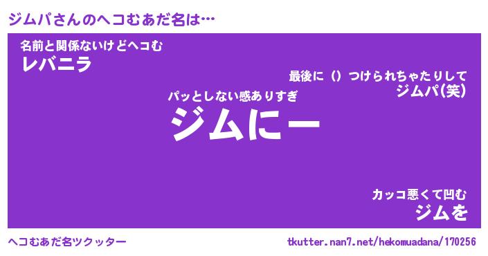 | ヒーロー風カッコイイあだ名 | 『スーパージムパ』『ウルトラジムパマン』 |
