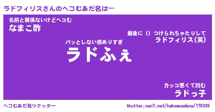 | 恥ずかしいあだ名 | 『プリティーラドフィリス』『ラドっちょ』 |