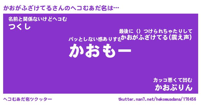 | 2回繰り返すあだ名 | 『かおかお』『かかおお』『ぬらぬら』 |