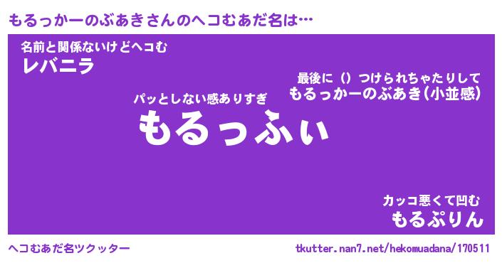 | 男性向けラノベタイトル風あだ名 | 『もるっかーのぶあきの憂鬱』 |