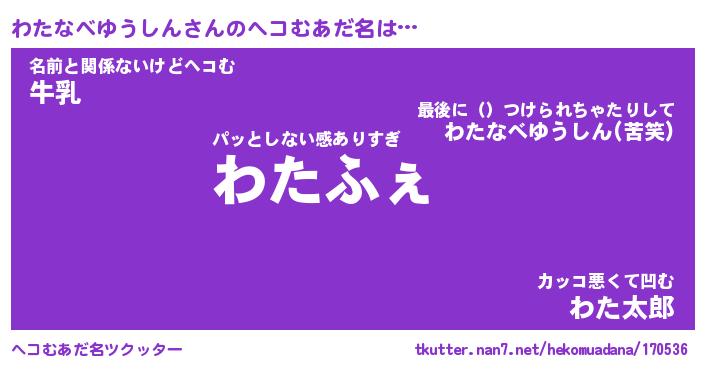| ポケモン風あだ名 | 『ワタチュウ』『ワタナダネ』 |