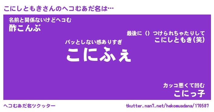 | 男性向けラノベタイトル風あだ名 | 『こにしともきの憂鬱』 |