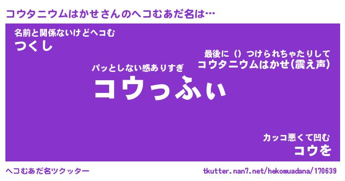 | 2回繰り返すあだ名 | 『コウコウ』『ココウウ』『いじいじ』 |