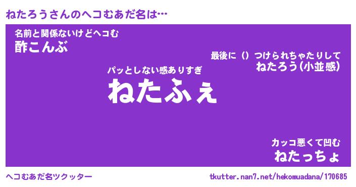 | 意味不明あだ名 | 『ペロリンねたろう』『永久保存ねたろう』 |