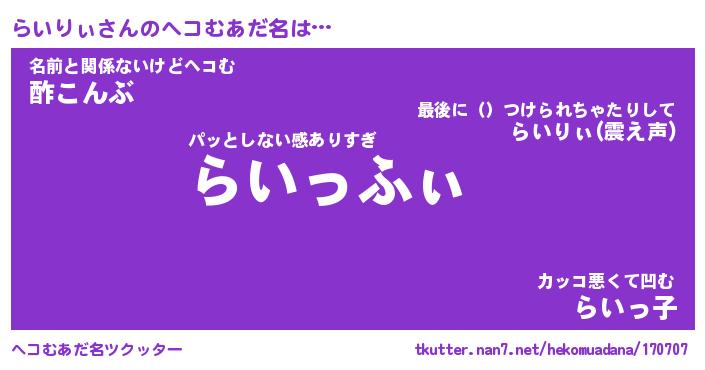 | ポケモン風あだ名 | 『ライチュウ』『ライリダネ』 |