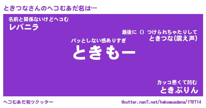 | ファンタジー風あだ名 | 『トキフェル』『エターナルトキツナー』 |