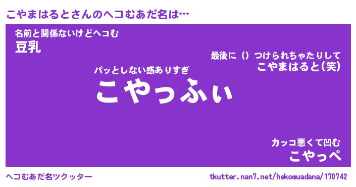 | ヒーロー風カッコイイあだ名 | 『スーパーコヤマハルト』『炎刃騎士コヤ』 |